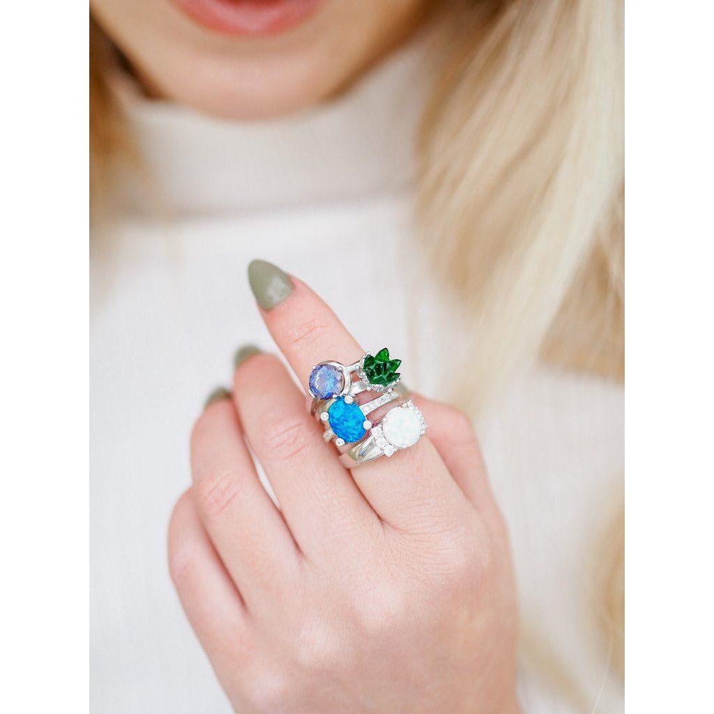 Materiál: rhodiované stříbro 925/1000, opál, zirkony.