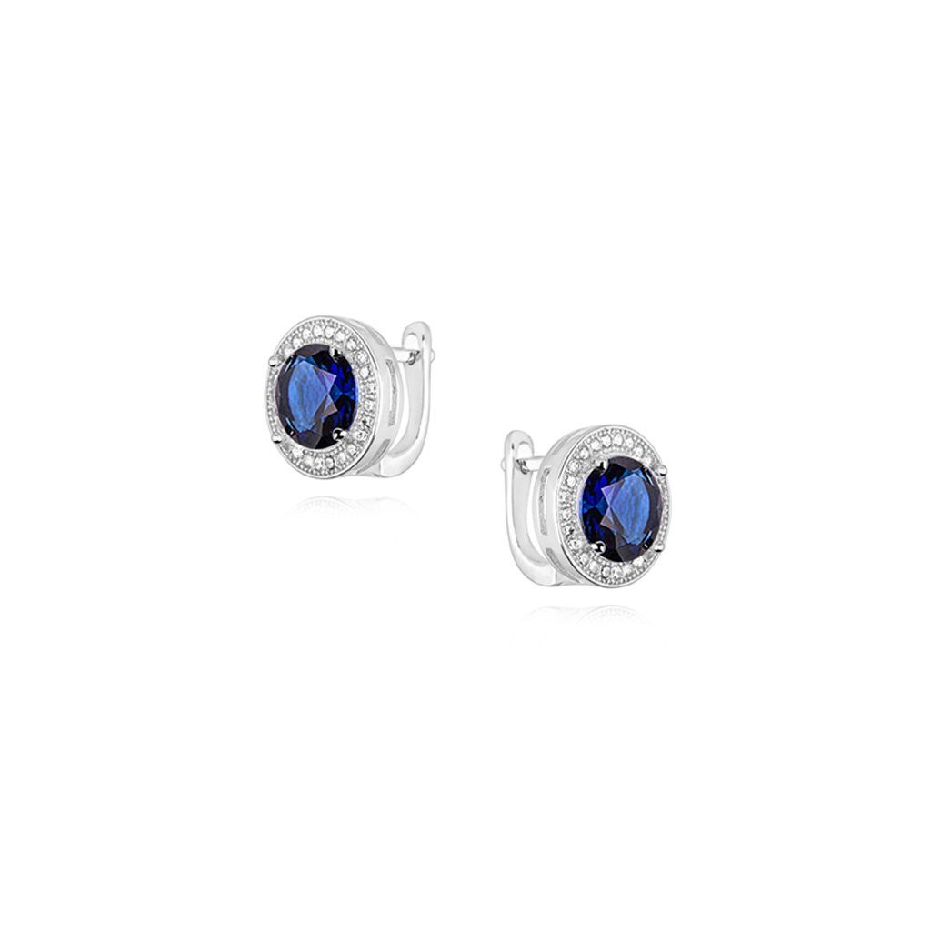 Decentní kulaté náušnice na klapku s modrým zirkonem