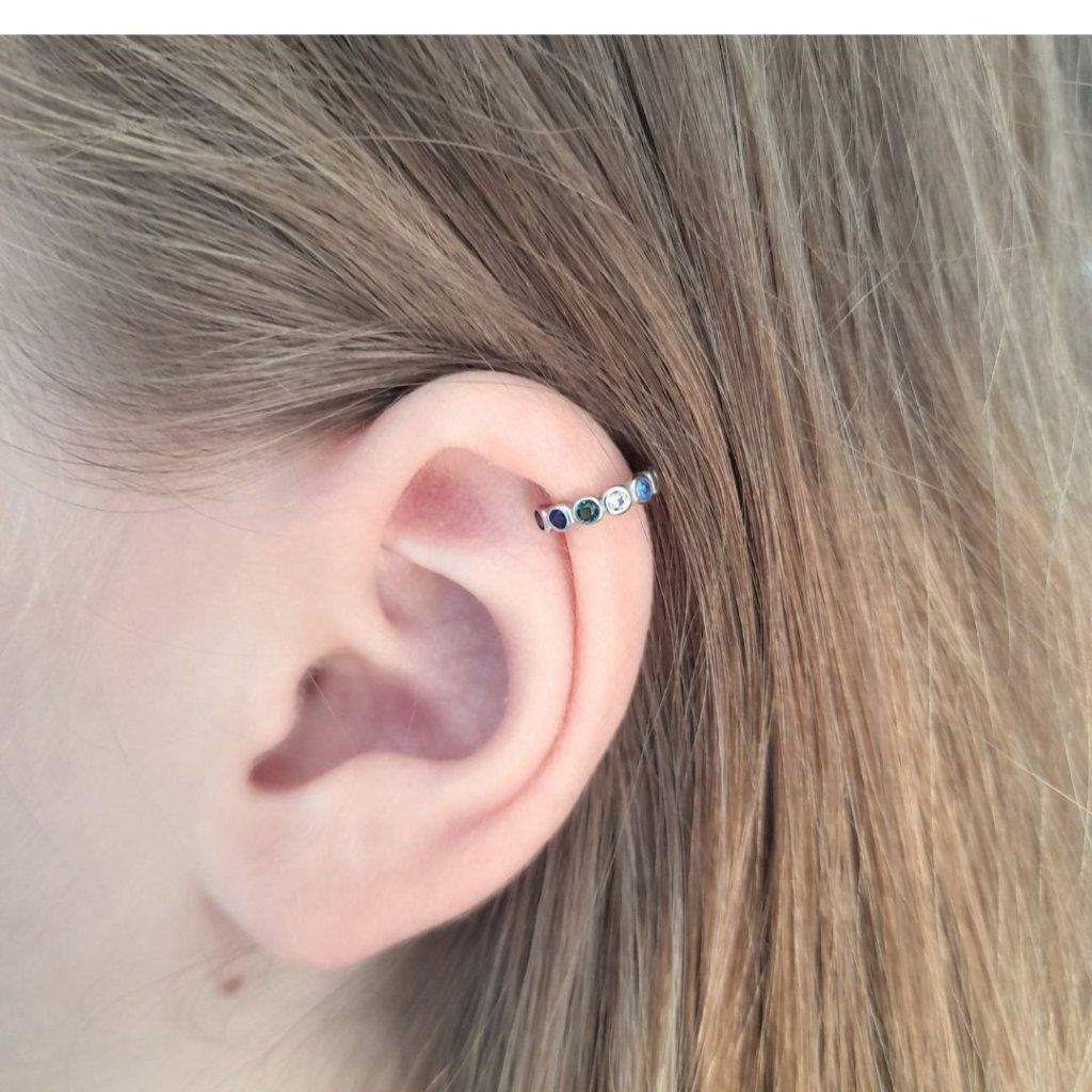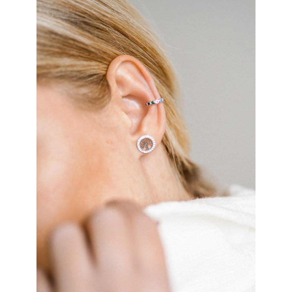Stříbrná záušnice s barevnými kamínky